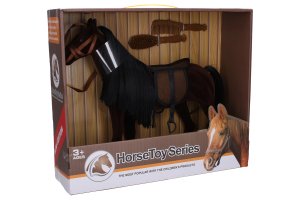 Kôň tmavý. Veľkosť 35cm. Obalenie obsahuje kone so sedlom a dva hrebene.