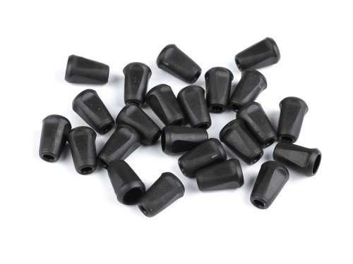 Základný komponent pre zakončenie šnúrok, ktoré lemujú rukávy a spodný lem búnd. Jednoduchý uzol ukončí šnúrku, koncovka ho schová a zabráni vytiahnutiu šnúrky z tunelíka. Rozmery: dĺžka koncovky je 17 mm, vonkajší spodný priemer je 8 mm a vnútorný spodný priemer je 4 mm. Vonkajší horný priemer je 12 mm a vnútorný horný priemer je 7 mm. Výška 17 mm. [Farby v mixe sa môžu líšiť v závislosti od skladových zásob.]