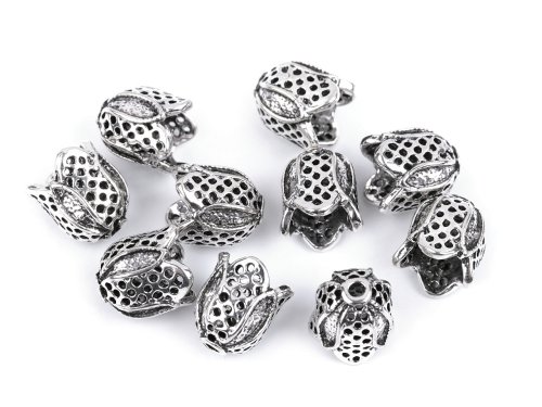 Kovový kvaplík v tvare kvetu môžete využiť ako zaujímavý a oživujúci prvok v širokej škále výrobkov. Je vhodný ako koncovka na odevné šnúrky. Má skvelé využitie ako sukienka na výrobu malých bižutérnych anjelov. Prievlak horný 2 mm, spodný 7,5 mm, výška 12 mm.