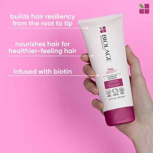 Rednúce vlasy, bez lesku a života? Rad Biolage Full Density pomáha bojovať so všetkými príznakmi rednutia vlasov - stratou hustoty, stratou objemu a stenčeným vlasovým vláknom. Prináša spojenie systému starostlivosti s okamžitými výsledkami a 3 mesačného programu s dlhodobým pôsobením pre všetkých, ktoré trápia rednutie vlasov. Balzam Biolage Full Density pre rednúce vlasy obohatený o biotín dodáva výživu aj odolnosť rednúcim vlasom a posilňuje ich od korienkov po končeky.