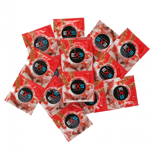 EXS Flavoured strawberry Sundae sú úžasne tvarované kondómy s príchuťou jahodovej zmrzliny. Pri žalude širší a pri koreni užší a vďaka tomu perfektne drží. Lubrikované na silikónovej báze.