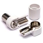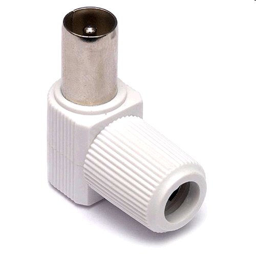 Konektor IEC kolík - uhlový. Konektor slúži na ukončenie anténneho kábla na vstup modulátora. Vnútro konektora je kovové! Konektor je uhlový. Určený na väčšie priemery koaxiálnych káblov.