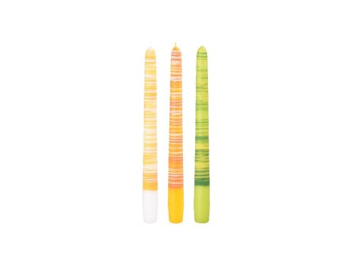 Kónická sviečka s výškou 240 mm s jemným prúžkovým motívom z kolekcie jar 2018 je štýlovým doplnkom pre každú domácnosť. Jej elegantný tvar krásne vynikne vo svietnikoch alebo stolných aranžmánoch a prináša do priestoru príjemnú, hrejivú atmosféru. Vďaka mixu farieb je možné sviečku ľahko zladiť s ďalšími jarnými dekoráciami či doplnkami. Hodí sa na každodenné použitie, sezónnu výzdobu aj ako drobný darček. Skvele doplnia moderné aj tradičné interiéry. Tovar je dodávaný v mixe. Doručovaný tovar je vyberaný náhodne a nie je možné vybrať konkrétne prevedenie.