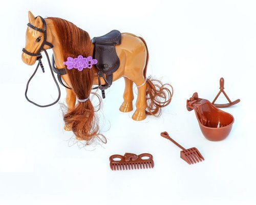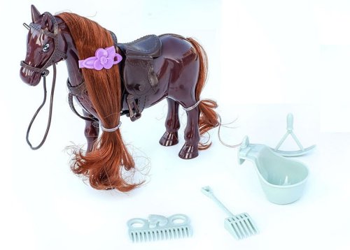 Koník v 2 farbách. Balenie obsahuje koníka, sponku do koníkovej hrivy, hrebienok a ďalšie doplnky.