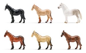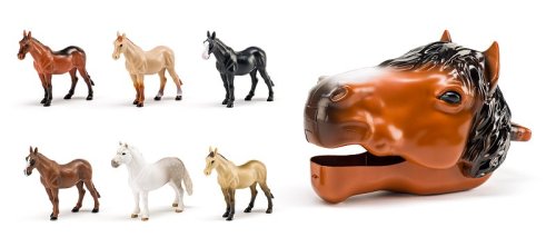 Vydajte sa na ranč s úžasnou konskou hlavou, ktorá v sebe ukrýva figúrky pre všetkých malých milovníkov koní. Konská hlava slúži ako praktický úložný box - pojme všetky figúrky a vďaka madlu ju deti ľahko kamkoľvek prenesú. Stačí stlačiť tlačidlo pod ňufákom a papuľa sa otvorí – hra môže začať! Vďaka click systému je možné papuľu otvoriť v niekoľkých uhloch. Vnútri sa skrýva sada šiestich koní v rôznych farbách. Celý set je zabalený v open boxe s vnútornou potlačou pastvín, ktorý je možné využiť ako súčasť hry alebo ako originálnu výstavnú dekoráciu. Obsah sady: 1x konská hlava, 1x čierny kôň, 1x tmavo hnedý kôň, 1x hnedý kôň, 1 x achaltekinský kôň, 1x béžový kôň, 1 x kôň grošák. Vyrobené z kvalitného plastu. Rozmery hlavy: 18,5 x 18 x 31 cm. Rozmery figúrky: 9 x 3 x 9,5 cm. Rozmery balenia: 22 x 32 x 19 cm. Nevhodné pre deti do 3 rokov. Vek: 3+