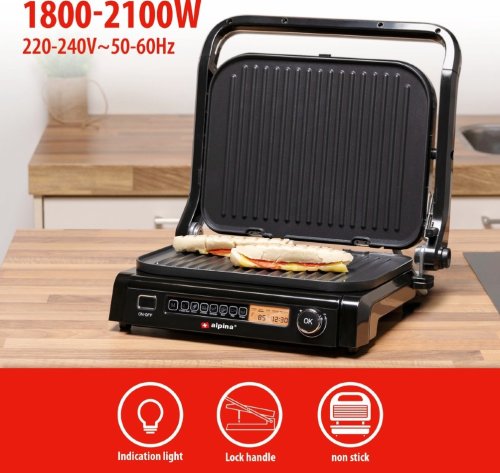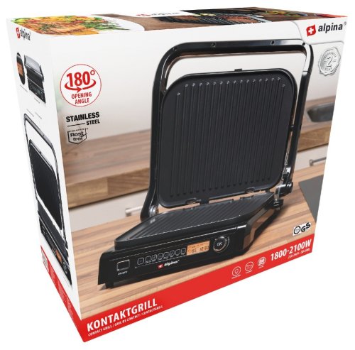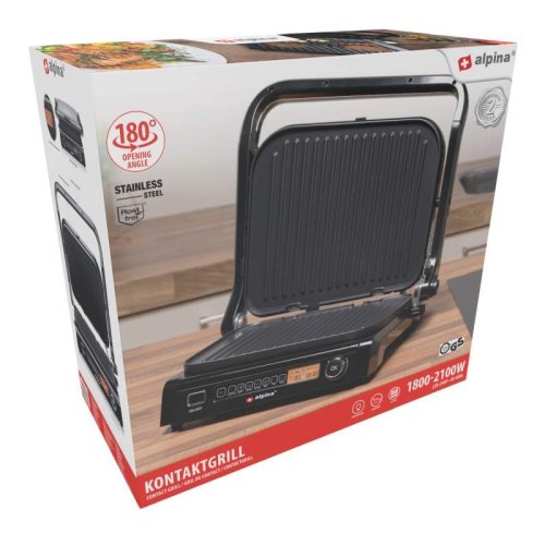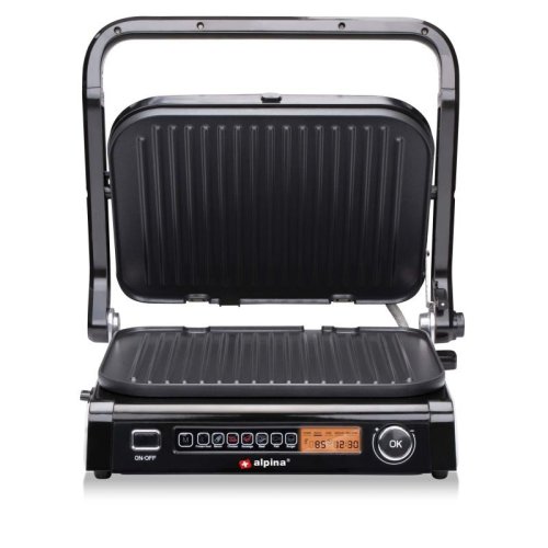 S týmto multifunkčným kontaktným grilom od alpina môžete pripraviť mnoho rôznych produktov jednoduchým spôsobom. Vďaka rôznym grilovacím režimom a režimu Smart Cooking je grilovanie hračkou pre každého. Grilovacie dosky sú nepriľnavé a majú plochu 32 x 25 centimetrov. Je možné ich preklopiť na seba a použiť ako sandvichmaker alebo gril Panini alebo pre dostatočnú horizontálnu plochu otočiť o 180 °.