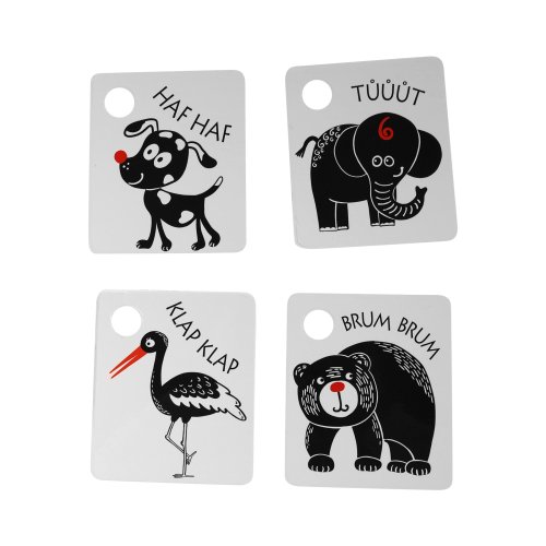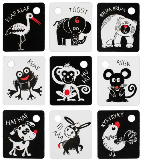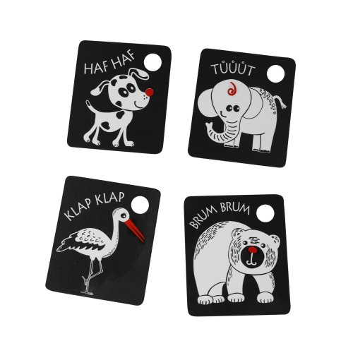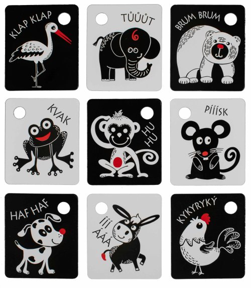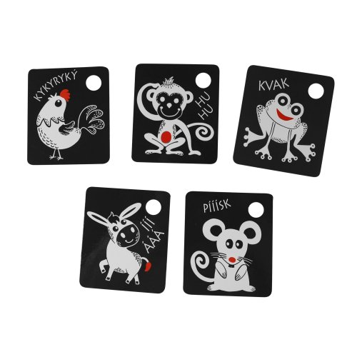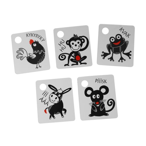 Kartičky sú balené po 9 kusoch, vyrobené zo slovenských materiálov. V každej kartičke je otvor na zavesenie. Súčasťou balenia je plastový krúžok. Tieto kartičky zvyšujú schopnosť a podnecujú detskú prirodzenú zvedavosť, rozvíjajú detskú motoriku, poznávanie zvieratiek.