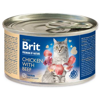 Konzervy Brit Premium by Nature dopĺňajú množstvo suchých krmív Brit Premium a ponúkajú tak chovateľom ďalšiu alternatívu v stravovaní ich mačiek. Konzervy majú formu veľmi jemného a krémového paté, vyrobeného z prírodných surovín s ohľadom na prospešnosť pre zdravie mačiek. Zloženie: kura 28%, hovädzia pečeň 17%, hrachová múka 2%, lignocelulóza 1%. Analytické zložky: hrubý proteín 12 %, hrubé oleje a tuky 3 %, hrubý popol 2,5 %, vlhkosť 78 %, hrubá vláknina 0,5 %, vápnik 0,4 %, fosfor 0,3 %, sodík 0,2 % . Nutričné doplnkové látky v 1 kg: vitamín D3 (3a671) 200 oi , vitamín E (3a700) 100 mg, biotín (3a880) 0,3 mg, zinok (3b606) 8 mg, železo (3b106) 6 mg, mangán (3b504 ) 1,5 mg, jodid draselný (3b201) 0,4 mg, meď (3b406) 0,3 mg, taurín (3a370) 500 mg. Metabolizovateľná energia: 910 kcal/kg