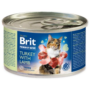 Konzervy Brit Premium by Nature dopĺňajú množstvo suchých krmív Brit Premium a ponúkajú tak chovateľom ďalšiu alternatívu v stravovaní ich mačiek. Konzervy majú formu veľmi jemného a krémového paté, vyrobeného z prírodných surovín s ohľadom na prospešnosť pre zdravie mačiek. Zloženie: morka 26%, jahňa 15%, pečeň, hrachová múka 2%, lignocelulóza 1%. Analytické zložky: hrubý proteín 11 %, hrubé oleje a tuky 4,5 %, hrubý popol 1,5 %, vlhkosť 78 %, hrubá vláknina 0,5 %, vápnik 0,4 %, fosfor 0,3 %, sodík 0, 2%. Nutričné doplnkové látky v 1 kg: vitamín D3 (3a671) 200 oi , vitamín E (3a700) 100 mg, biotín (3a880) 0,3 mg, zinok (3b606) 8 mg, železo (3b106) 6 mg, mangán (3b504 ) 1,5 mg, jodid draselný (3b201) 0,4 mg, meď (3b406) 0,3 mg, taurín (3a370) 500 mg. Metabolizovateľná energia: 1 010 kcal/kg