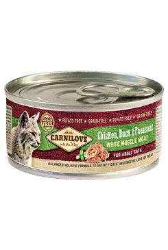 Zloženie: 35% kuracie mäso, kuracia pečeň, kuracie srdce, 10% kačica, 10% bažant, 2% hrachová múka, 1% brusnice, 1% lignocelulóza, 0,1% ľanový olej.