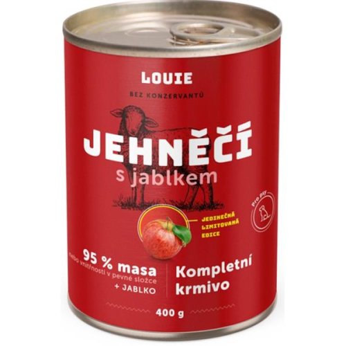 Kompletné krmivo pre psy všetkých plemien bez rozdielu veku. Šťavnatá konzerva obsahujúca 95% mletého jahňacieho mäsa v pevnej zložke. Okrem mäsa sa v konzerve nachádzajú jablká, minerály, vitamíny a zmäkčené jahňacie kosti, ktoré sú prírodným zdrojom vápnika a fosforu rovno v prirodzenom pomere. Jablko sa postará o vstrebanie šťavy , ktorú mäso počas sterilizácie uvoľní, a dodá vášmu psovi potrebné živiny a uľahčí trávenie. Nemusíte sa preto báť, že keď bol váš psík zvyknutý na granule, budete behať na prechádzky častejšie ako obvykle.