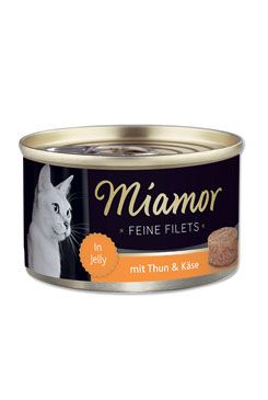 Konzerva s filetami z tuniaka a syrom, doplnkové krmivo pre dospelé mačky.
