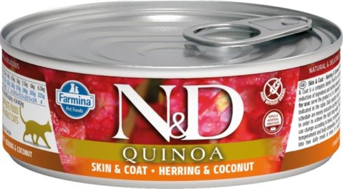 Sleď (65%), hydrolyzované rybie bielkoviny, semienka quinoi (5%), rybí olej, kokos (2%), fruktooligosacharidy, chondroitín sulfát, glukosamín, vitamíny, minerály. Zdroj proteínov: sleď, hydrolyzované rybie bielkoviny. Zdroj sacharidov: semienka quinoi.