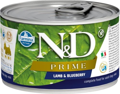 Chutná mäsová konzerva s jahňacím a čučoriedkou. Kompletné vlhké krmivo pre dospelé psy malých plemien. Zloženie: Jahňa (50%), sleď, batáty, varené vajcia, rybí olej, čučoriedky (2%), fruktooligosacharidy, cholín chlorid, chondroitín sulfát, glukosamín, vitamíny, minerály. Doplnkové látky na 1 kg: Nutričné doplnkové látky: Vitamín A 4000 MJ; Vitamín D3 400 MJ; Vitamín E 130 mg; chelát zinku hydroxy analógu metionínu 200 mg; chelát mangánu hydroxy analógu metionínu 40 mg; chelátová forma železa, hydrát 70 mg; chelát medi hydroxy analógu metionínu 16 mg; inaktivované kvasinky obohatené selénom 1,10 mg; DL-Metionín 1000 mg; Taurín 500 mg; L-karnitín 50 mg. Analytické zložky: Vlhkosť 75 %; hrubý proteín 10,50 %; hrubé tuky a oleje 7 %; hrubá vláknina 0,80 %; hrubý popol 2,40%. Dávkovanie: