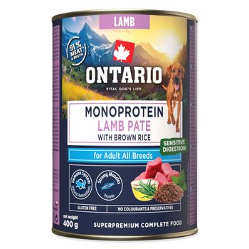 Konzerva Ontario Adult monoproteín jahňacie pate s hnedou ryžou 400g