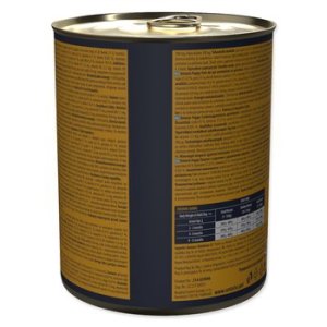 | Čo trápi majiteľa? Bežné konzervy často obsahujú málo mäsa, pridanú chémiu, obilniny, chemické konzervanty alebo farbivá. To zaťažuje zažívanie a znižuje chuť. | Naše riešenie: Garantujeme 91% mäsa a vývaru. Konzervy sú Grain Free a bez farbív a konzervantov. Monoproteín z jedného druhu bielkovín dáva istotu pre psy s citlivým zažívaním a alergiami. |