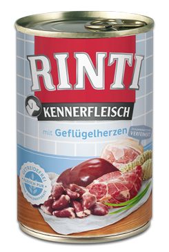 Konzerva s hydinovými srdiečkami. Kompletné krmivo pre dospelé psy. Lahodné kúsky mäsa.