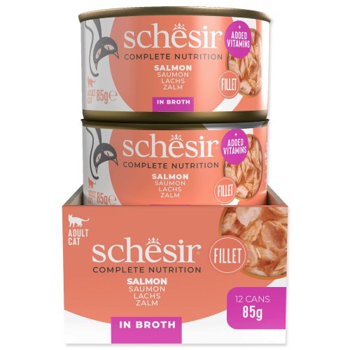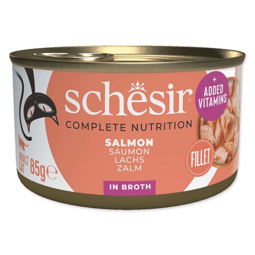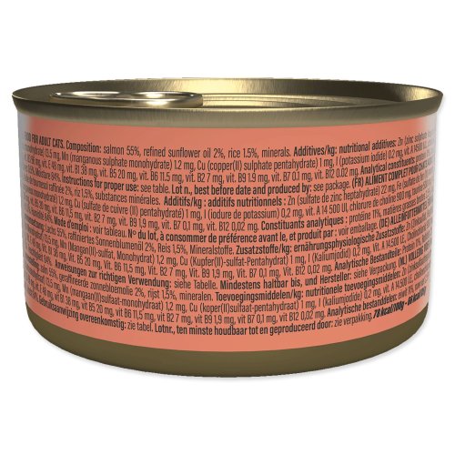 Konzerva s prírodným lososom. Doplnkové krmivo pre dospelé mačky.