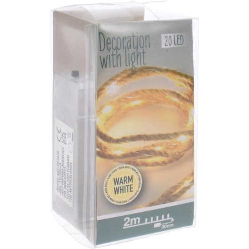 Osvetlené lano Dĺžka - 2 m Dĺžka prívodu - 30cm 20 LED Farba - teplá biela Napájanie 2x AA Typ a určenie - vnútorné Stupeň krytia - IP20