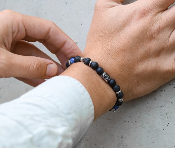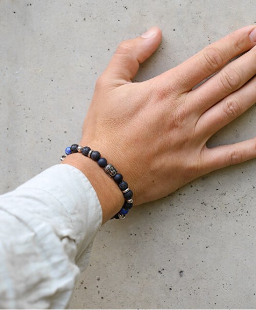 Korálkový náramok z lávového kameňa, achátu a Lapis lazuli MINK115/19