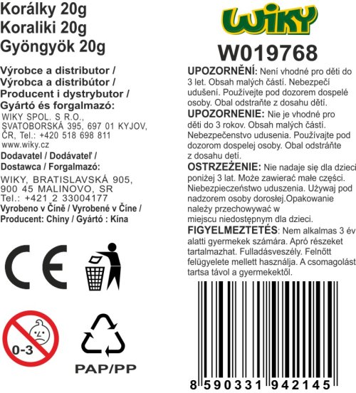 Farebné korálky na drobnú kreativitu. Hmotnosť balenia: 20 g.
