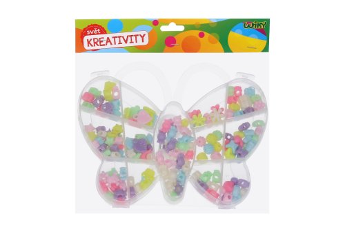Korálkový set s hmotnosťou 55g v tvare motýľa. 13 rôznych druhov korálikov + povrázok.