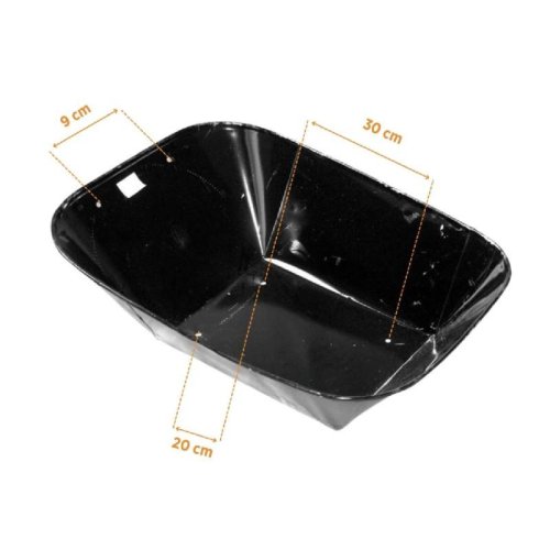 Náhradná plechová lakovaná korba stavebného kolieska, bodovaná. Objem 60 litrov, hmotnosť 5 kg.
