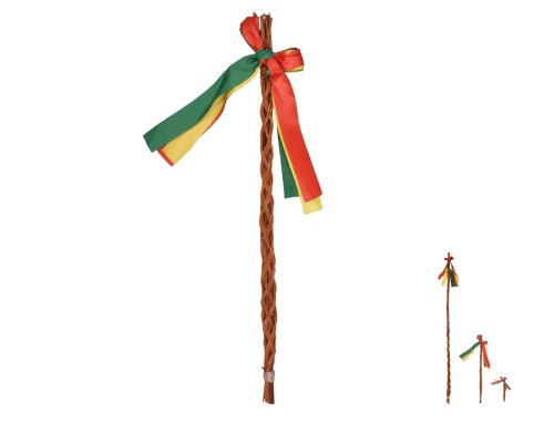 Veľkonočný korbáč pletený z prútia s farebnými mašľami. Dĺžka: 40cm.