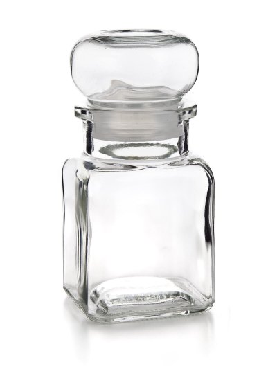 Korenička 150 ml, hranatá, s uzáverom, sklenená.