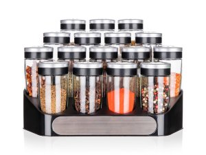 Sada koreničiek ALTIMA v plastovom ABS stojane. Koreničky majú všestranné využitie a to na základe viečka, ktoré je opatrené 3 rôznymi otvormi - jemný, hrubý, univerzálny. Koreničky sú vhodné na jemne mleté, ale aj hrubšie druhy korenia a rovnako tak sú ideálne pre korenie typu klinčekov a celé korenie. Do umývačky možno dať iba sklenenú časť koreničiek.