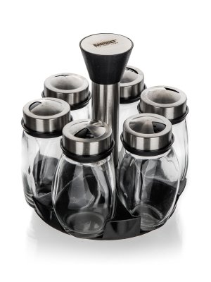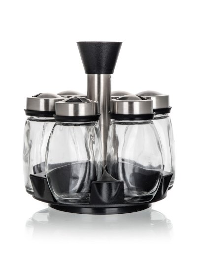 Korenička BARRIL sklo + PH (6 ks) s otočným stojanom PH. sada obsahuje: - 1 x plastový ABS otočný stojan - 6 x korenička objem: 120 ml materiál: sklo, silikónové tesnenie, plastové viečko Sada sklenených …