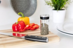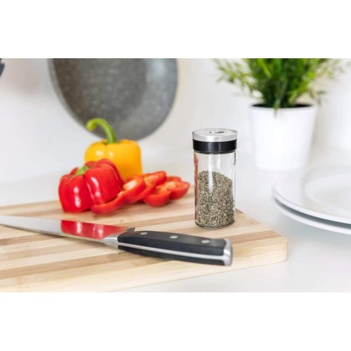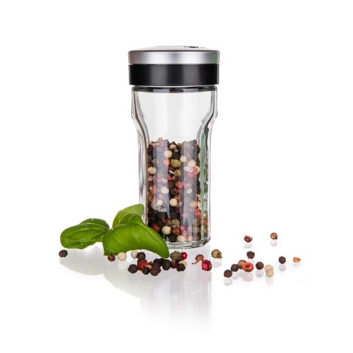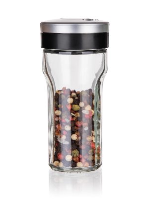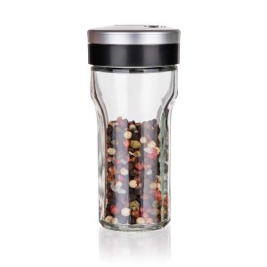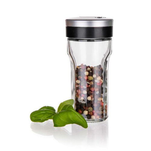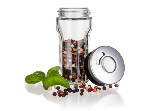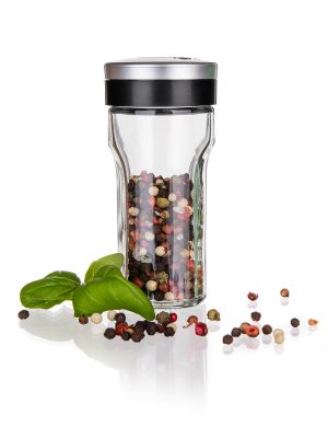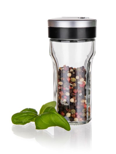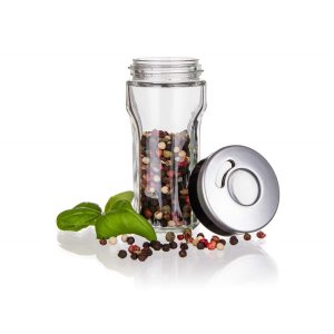 Sklenená korenička VIRTU s plastovým viečkom. Korenička má všestranné využitie a to na základe viečka, ktoré je opatrené 3 rôznymi otvormi - jemný, hrubý, univerzálny. Korenka je vhodná na jemne mleté, ale aj hrubšie druhy korenia a rovnako tak je ideálna pre korenie typu klinčekov a celé korenie. Do umývačky je možné dať iba sklenenú časť koreničky.