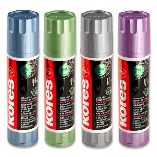 Štandardná Kores biela lepiaca tyčinka z dizajnovej edície v štyroch metalických farbách. Obsahuje glycerín na jemné lepenie, čistá a hladká aplikácia, vhodná pre všetky druhy papiera. Lepí trvalo za 60 sekúnd. Ideálne na použitie doma, v kancelárii aj v škole. Bez možnosti výberu farby. Vyrobené v SR
