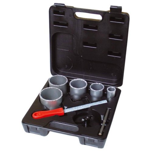 korunka vykružovacia - sada 8 ks korunka s karbidovým ostrím pre čisté a presné vŕtanie priemery koruniek: 33; 53; 67; 73; 83 mm univerzálny ALU unášač špeciálny vodiaci vrták pilník balené v plastovom …