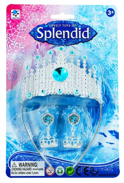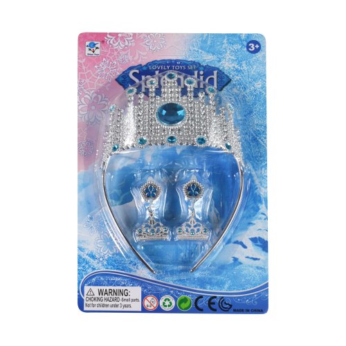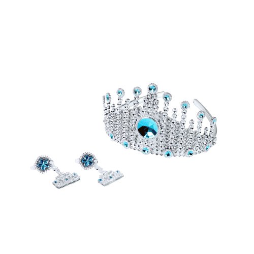 Krásna korunka pre snehové princezné s náušnicami. Všetko je zdobené modrými prvkami. Perfektná sada ku kostýmu! Odporúčané pre dievčatá od 3 rokov.