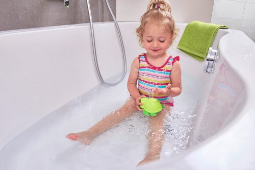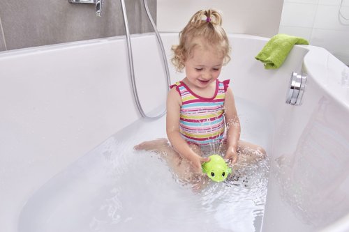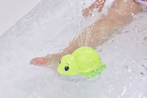 Korytnačka do vane pláva po hladine a strieka vodu. Dĺžka 11 cm.