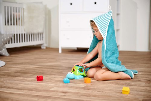 Vkladačka v tvare korytnačky vo vode pláva na hladine, súčasťou 5 kociek rôznych tvarov. Dĺžka korytnačky 20 cm.