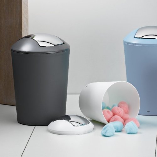• farba: pastelová modrá- materiál: plast- kôš je vybavený otočným vekom v striebornej farbe- výška: 29 cm - priemer: 19,5 cm - objem: 5 l- značka: KELA- v sérii Marta vo farbe pastelová modrá môžete ďalej dokúpiť: misku na mydlo, pohár, dávkovač mydla, wc štetku a malý kozmetický kôš 1,7 litra