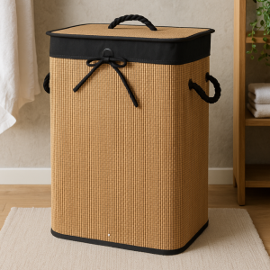 Kôš na bielizeň z bambusu – prírodný dizajn s kontrastnými detailmi