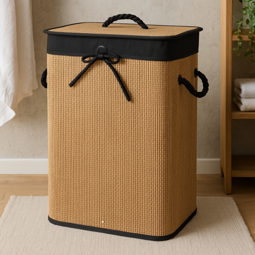 Praktický a elegantný kôš na bielizeň vyrobený z kvalitného bambusu (Phyllostachys heterocycla), ideálny pre moderné aj rustikálne interiéry.
