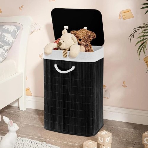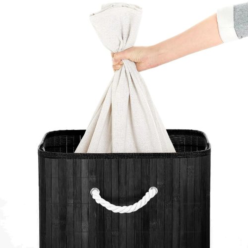 Tento kôš na bielizeň je vyrobený z bambusu a pevnej látky, takže vám zaistí dlhú životnosť. Kovové výstuhy dodávajú stabilitu a skladacia konštrukcia umožňuje pohodlné skladovanie, keď sa nepoužíva.