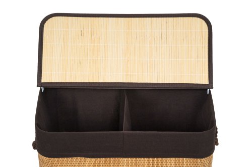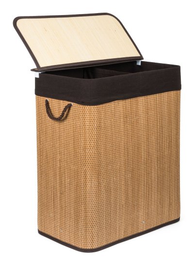 Bambusový kôš G21 s pevným vekom má prateľnú látkovú vložku , rozdelenú na dva samostatné oddiely . Špinavú bielizeň tak môžete triediť už pred praním a umiestniť zvlášť kúsky podľa materiálu alebo farby .