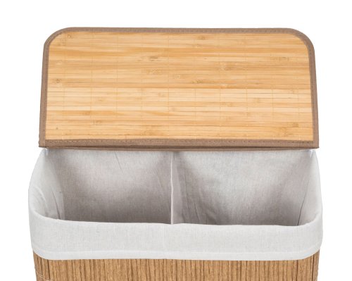 Kôš na bielizeň G21 z PE ratanu s pevným vekom má prateľnú látkovú vložku , rozdelenú na dva samostatné oddiely . Špinavú bielizeň tak môžete triediť už pred praním a umiestniť zvlášť kúsky podľa materiálu alebo farby .