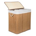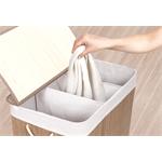 Bambusový kôš G21 s pevným vekom má prateľnú látkovú vložku , rozdelenú na tri samostatné oddiely . Špinavú bielizeň tak môžete triediť už pred praním a umiestniť zvlášť kúsky podľa materiálu alebo farby .