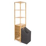 Praktický stojan so 4 policami a výklopným košom na bielizeň je skvelým riešením. Ušetrí veľa miesta a uložíte doň všetko, čo potrebujete. Potreby na pranie alebo kozmetiku, kúpeľňové vybavenie a uteráky alebo upratovacie prostriedky. Každá z políc unesie až 10 kg záťaže . Jedna z nich tvorí zároveň veko koša na špinavú bielizeň s látkovou vložkou v spodnej časti stojana.