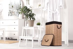 Ako vybrať najlepší kôš na špinavú bielizeň? Čo sa materiálu koša týka, odporúčame jednoznačne bambus . Je odolný voči vlhkosti , takže ho môžete bez obáv umiestniť do kúpeľne alebo servisnej miestnosti s práčkou. Zároveň je aj vizuálne veľmi príjemný - kombinácia prírodného materiálu a hnedej vložky a madiel evokuje pocit čistoty , navyše sa aj hodí k akémukoľvek interiéru.