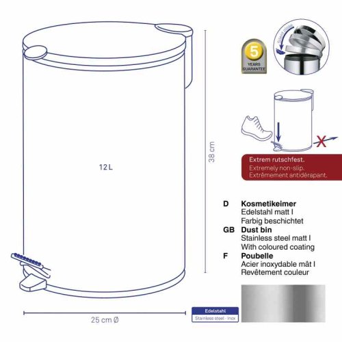 Pedálový kôš Mats v matnej striebornej farbe je nielen elegantný, ale aj praktický doplnok do každej domácnosti či kancelárie. Vďaka systému tichého zatvárania sa veko doviera hladko a bez rušivého hluku. Protišmyková základňa zaisťuje stabilitu a pohodlné používanie.