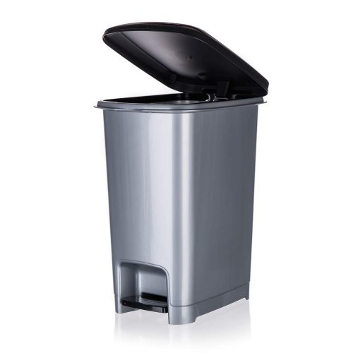 Odpadkový nášľapný kôš STEP, v šedej farbe, je elegantný a praktický bezdotykový kôš na odpadky. Kôš má nášľapný systém na otváranie veka na hygienickú manipuláciu.