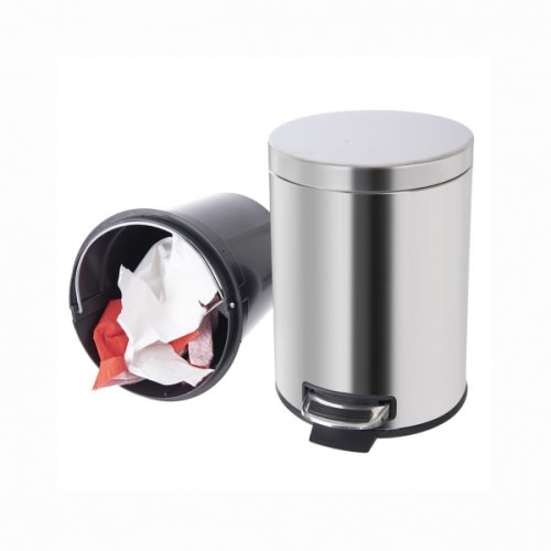 Matný nerezový odpadkový kôš s nášľapným pedálom. Objem 3 litre, priemer 17 cm, výška 25.5 cm. Plastová vyberateľná vložka s nerezovým uchom. Na zadnej strane koša kovové ucho na odnos celého koša. Balenie v krabici. EAN 8592381163976