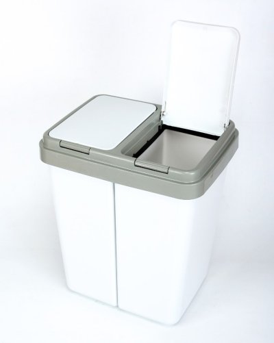 Odpadkový kôš DUO na triedený odpad vyrobený z vysoko kvalitného plastu. Otváranie pomocou klipu na veku. Kôš sa ľahko používa, je vybavený systémom pre ľahké otváranie a zatváranie a tesne priliehajúcim vekom, ktoré účinne zabraňuje úniku nepríjemných pachov. Dva samostatné koše spojené aretáciou na spodnej strane koša. Obruče pre ľahké uchytenie odpadkového vreca. Rozmery koša 32 x 21 x 46 cm, rozmery celku 44 x 32 x 50 cm, objem 2 x 25 litrov. EAN 5906485656631